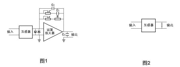 次级如不加运算放大器而直接并联一个电阻使输出变换成电压信号也是可以的,使用电路如图2所示。前提是电阻要小于800Ω,输出电压z.ui大2伏,这时仍能得到非线性度优于0.1%的输出电压信号。与推荐电路1比较,其影响如下:1.缩小了互感器的动态范围,2.使相移增大,电阻要求精度优于1%, 温度系数优于50PPM。